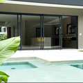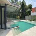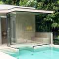 Sauna envidraçada com acesso direto à piscina