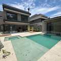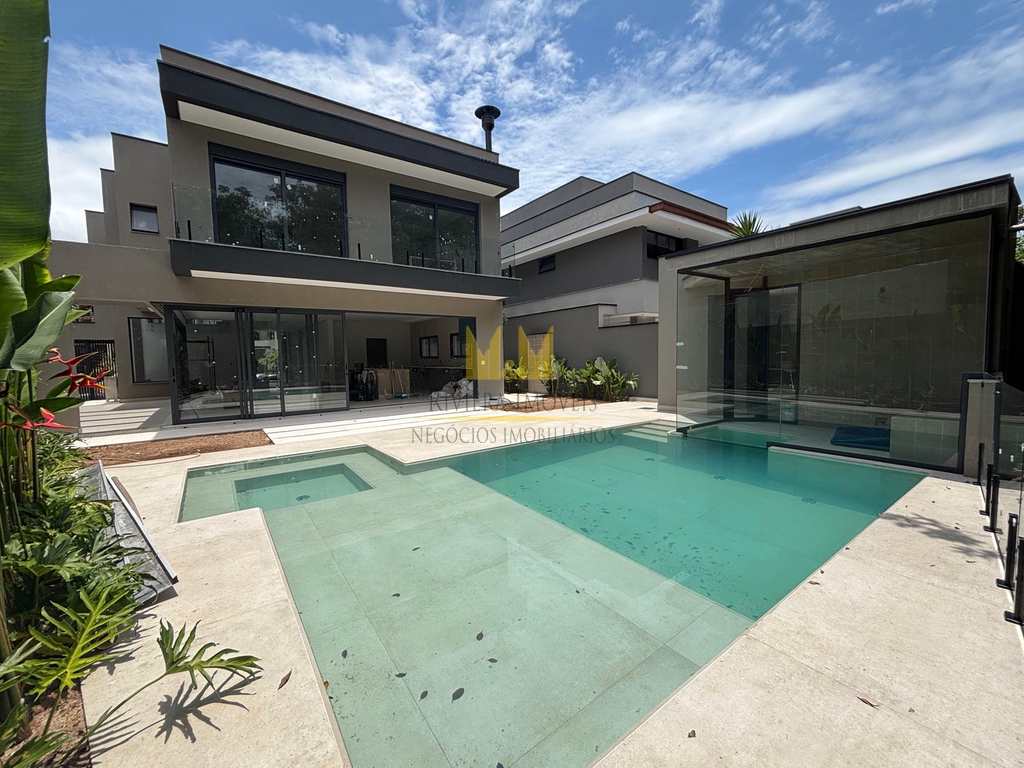 420,82 m² da residência (204,82 m² no pavimento térreo com sauna + 190,16 m² no pavimento superior + 26,84 m² de piscina);